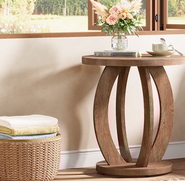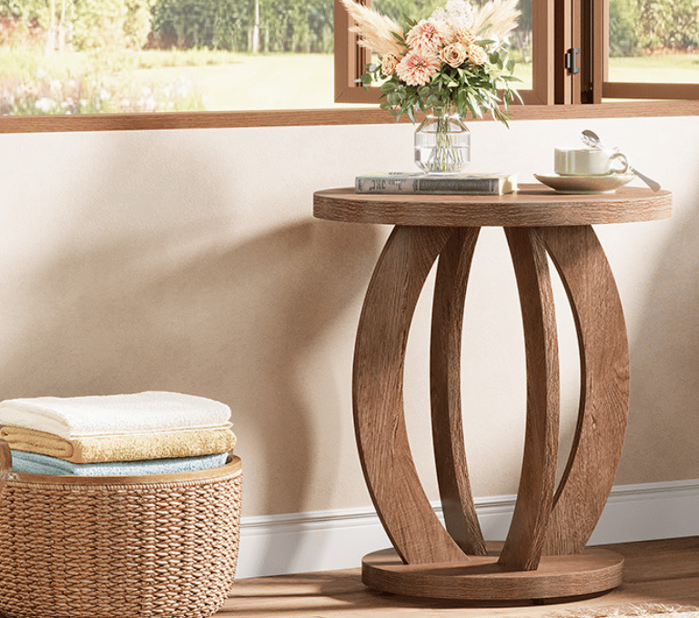 Transform your space with this sculptural round side table that adds warmth and elegance. Make any corner your new favourite spot.