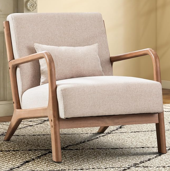This mid-century chair offers clean lines and soft upholstery for timeless comfort.